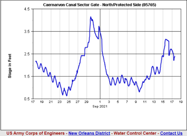 Hurricane Ida made landfall on August 29, 2021 as a Category 4. It served as one of the greatest tests to the Hurricane and Storm Damage Risk Reduction System (HSDRRS) since its construction. Approximately 159 Flood Protection Authority-East staff members worked before, during, and after Ida’s arrival to operate the system. Despite noteworthy storm surge, the levees, gates, and pump stations that make up HSDRRS functioned as designed, keeping flood waters out of Orleans, East Jefferson, and St. Bernard parishes. Inspections of the system began as soon as conditions were safe to identify any minor damages and begin preparing for whatever storm may come next. Below are a few facts, figures, and images regarding Hurricane Ida and the FPA-East’s response.